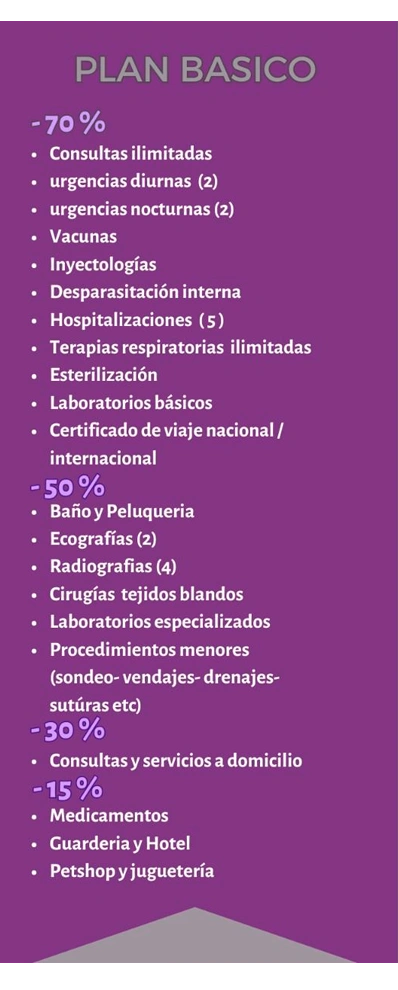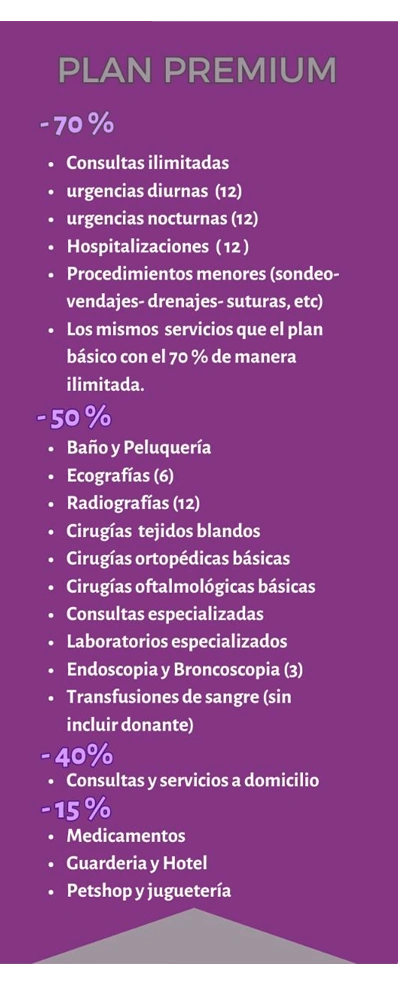 Se maneja por medio de porcentajes de descuento y cantidades, empieza a cubrir después de las 24 horas, no tenemos límite de edad, hay servicios que otras EPS no manejan como lo es el baño y la peluquería, la guardería, venta de productos, servicios a domicilio.